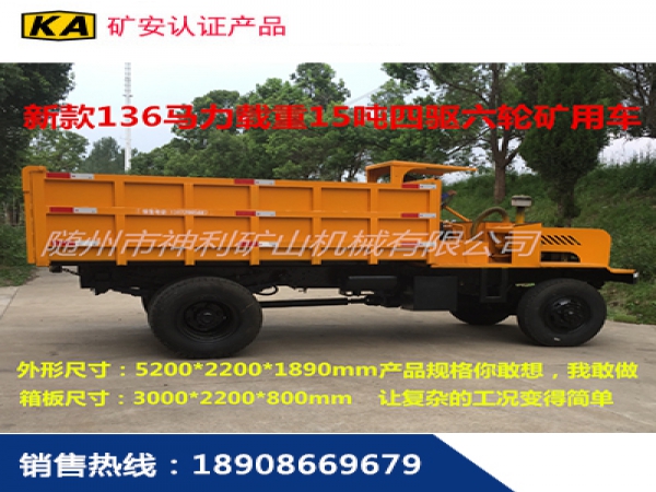 新款載重15噸礦用四驅車,**大載重爬坡25度,采用分時四輪驅動氣動**,后驅四驅輕松轉換,配備136馬力增壓發(fā)動機,12檔帶高低速變速箱,堅固耐用,尺寸可根據(jù)巷道環(huán)境訂制。柴油機和變速箱直接傳動,動力更強勁,載重量大。